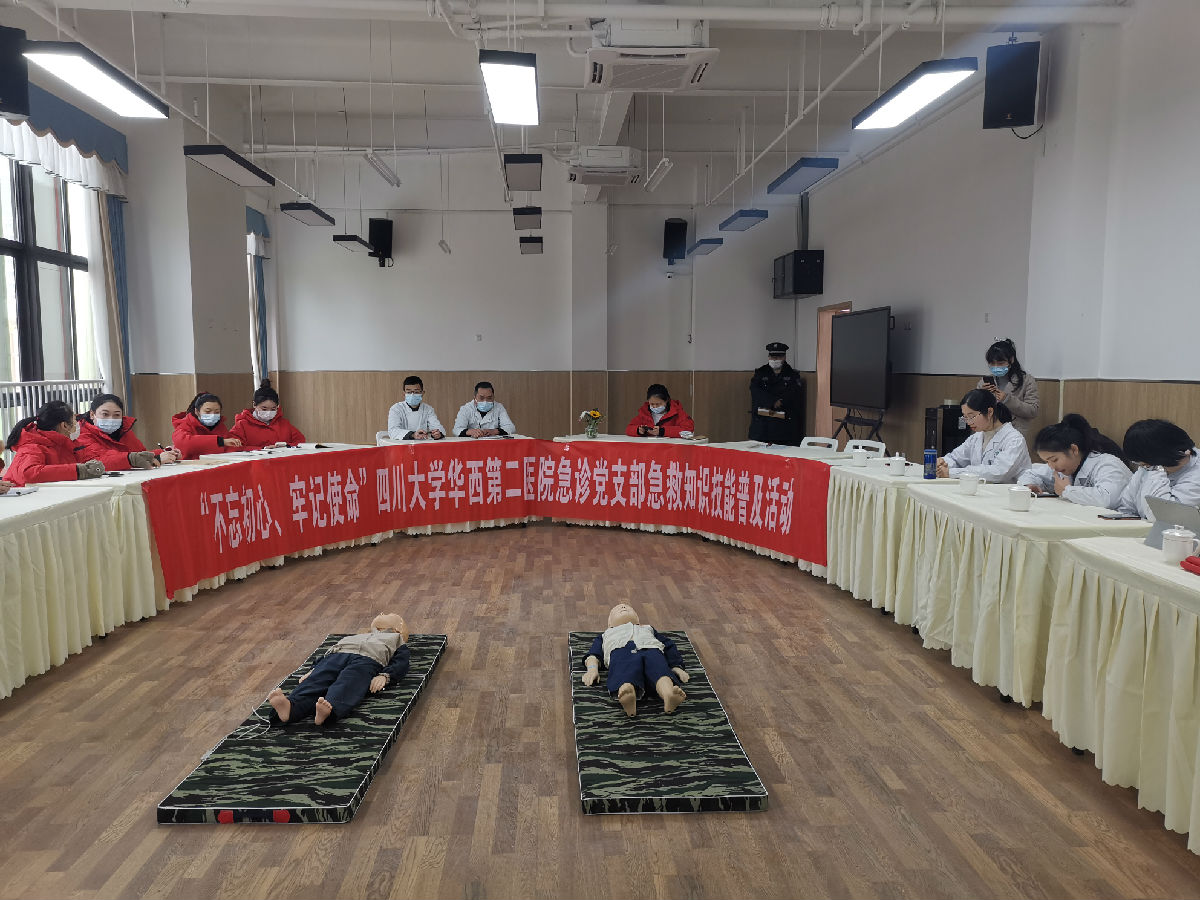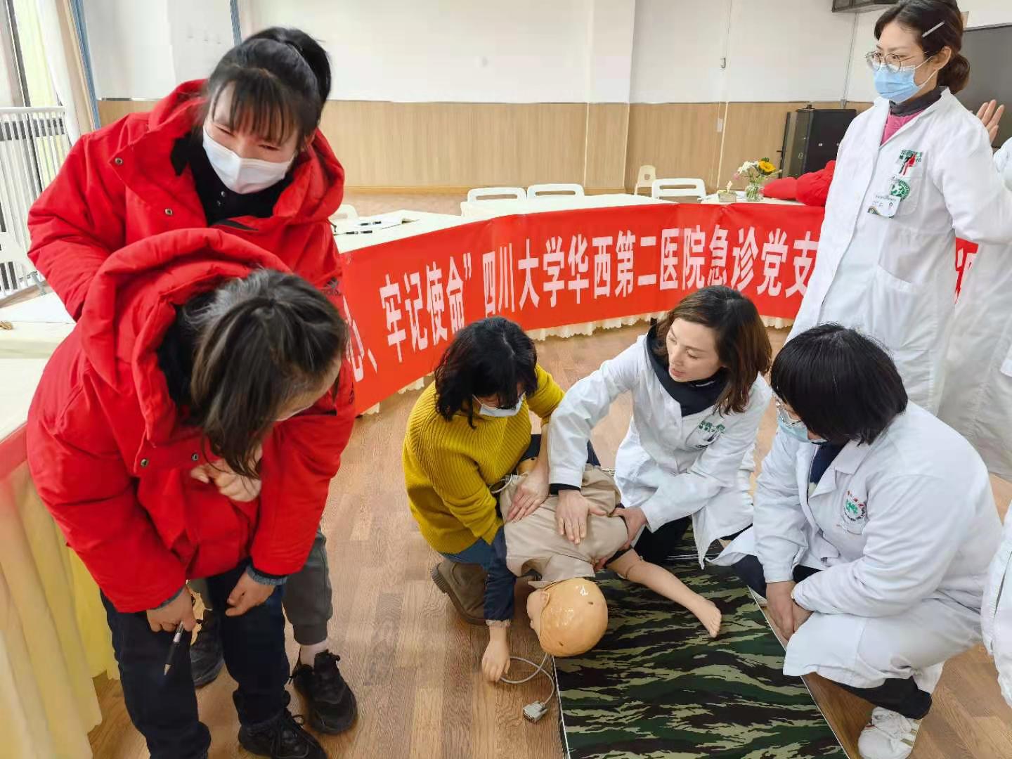2021年01月27日13:30-16:00,在周艳副书记、金秋副护士长、张时鸿护士长(健康管理中心)的带领下,急诊科党支部、团支部,携手华西第二医院健康管理中心走进天府新区第十一幼儿园,开展“科普健康知识培训”为主题的党组织活动,对该幼儿园的教师和相关工作人员们进行心肺复苏知识、海姆立克急救法培训,树立幼儿教师们早期参与现场急救的意识,提高现场急救能力,从而深入推进院前急救体系的发展。