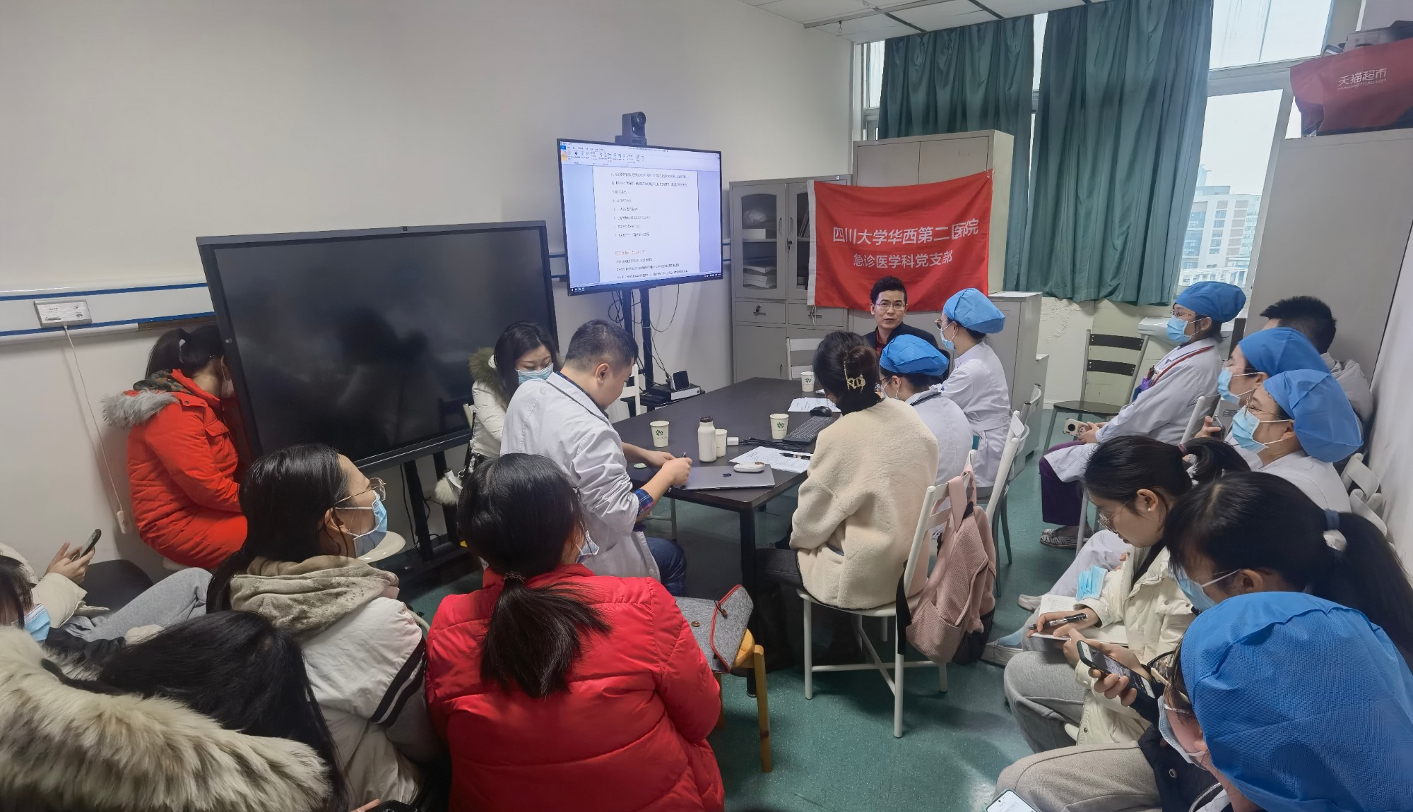 2022年1月14日下午5点,在华西院区急诊办公室召开了一月党员大会。会议由急诊科党支部书记李熙鸿、副书记周艳医师主持,全体党员参加。