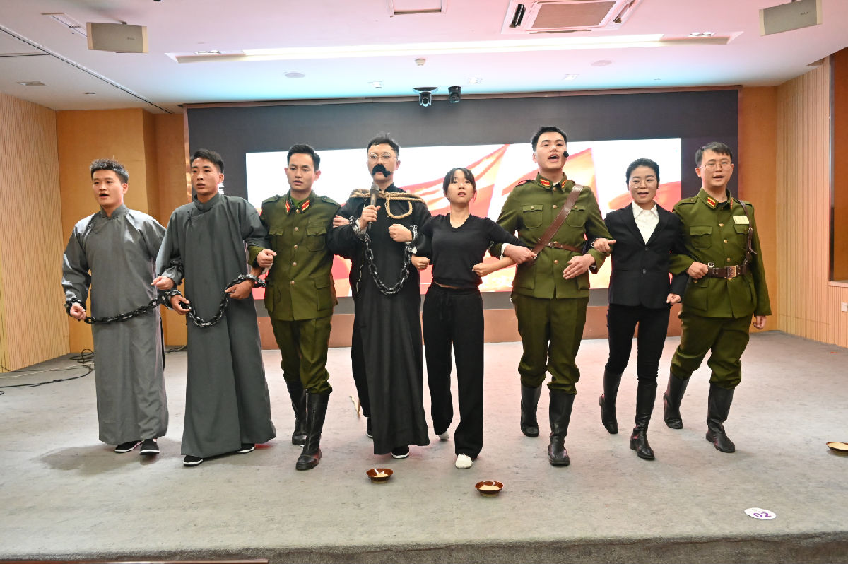 接着,进行了“忆红色经典,感峥嵘岁月”活动环节,第三党小组的同志们经过精心策划与准备,为大家展演了红色影视剧《李大钊》的经典片段,展示了革命烈士李大钊英勇就义前后的感人事迹,他们的表演真实感人,深深触动了在场的所有党员同志,再次让我们感受到了共产党员那种对信仰坚定不移,宁死不屈的伟大精神。