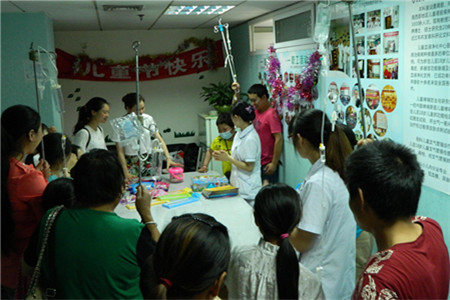 在活动中,小朋友们通过各种各样的形式---《小苹果》唱歌、《两只老虎》舞蹈、讲笑话、背唐诗、背《三字经》。孩子们的家属则在旁边拍照亦或者给小朋友加油鼓劲。为了给行动不便的小朋友一个愉快地儿童节回忆,特意来到病房对躺在病床的小朋友赠送了孩子们特别的礼物,整个活动现场充满了欢声笑语,给孩子们留下了一段难忘的回忆。