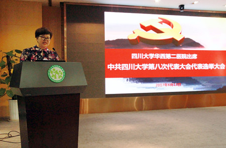 根据中共四川大学第八次代表大会筹备工作组织组的通知精神,我院党委于2017年6月13日下午2点,在医院西部妇幼医学研究院2楼会议室召开党员代表大会,选举产生出席四川大学第八次党代会代表候选人,共有107名代表参加了会议,会议由党委王素霞书记主持。