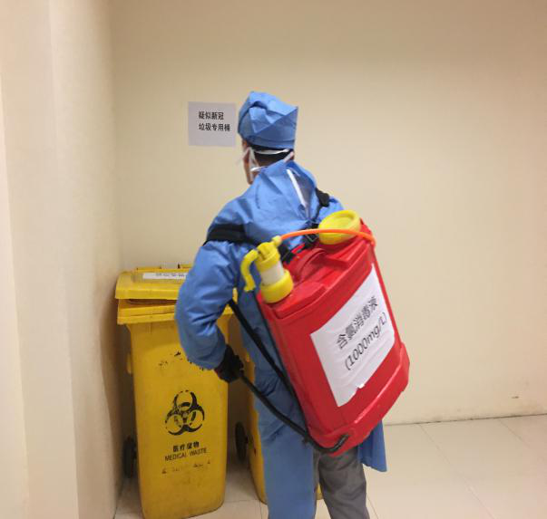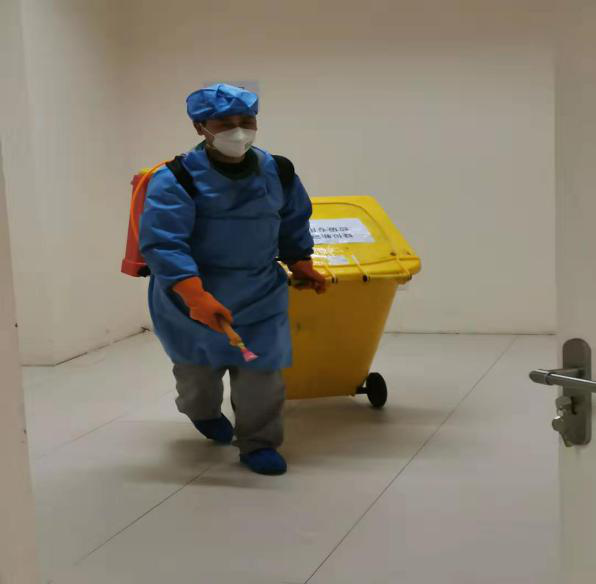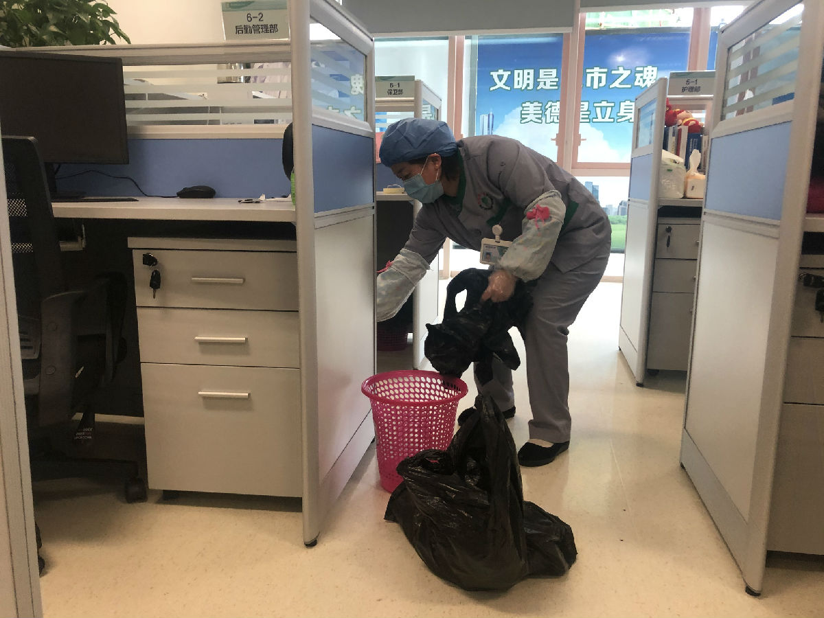此外,我们高度重视疑似患者医疗垃圾的安全收集,及时组织大家学习医废收集特殊要求、严格消毒隔离措施、以及交接文件记录的书写。在做好工作的同时,医疗运行保障办公室每天向员工发出温馨提示做好个人防护,关心员工出行安全,要求员工每天测量体温,主管负责询问员工是否有不适、有无特殊接触史,确保工作、出行人员、返岗人员防控措施落实到位,控制感染风险。在处理医院疑似患者发热门诊和各病区(房)产生的医疗废物和生活垃圾时,按照院感要求对医疗废物进行分类收集。同时,在收集过程中,专门开辟转运通道,确保收集转运过程无遗漏,无散失,同时对医疗废物进行标识、增加包装袋,及时登记,确保医疗废物转运安全。在控制感染风险加大环境卫生整治力度,对院区污水处理、卫生间环境进行全面清理,及时处理产生的医疗废物,避免了各种废弃物的堆积。
