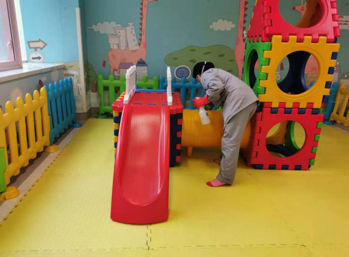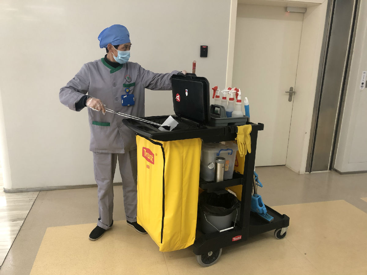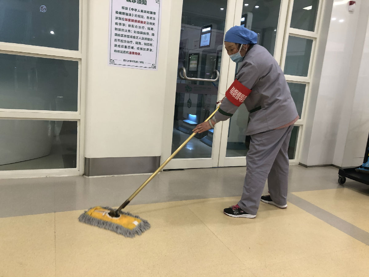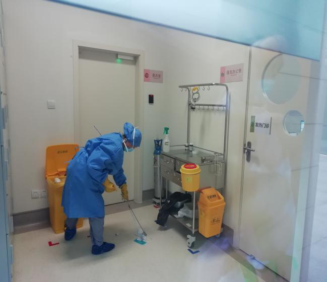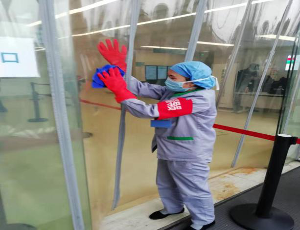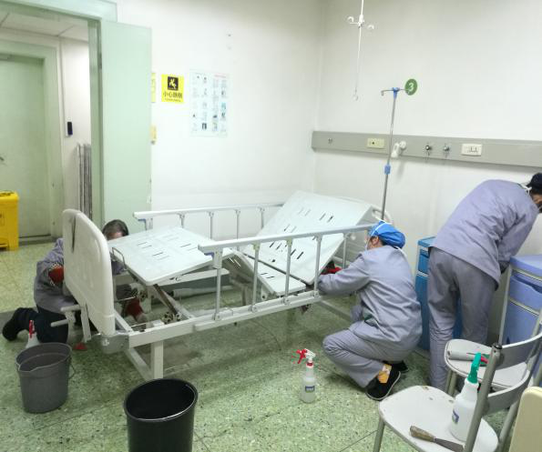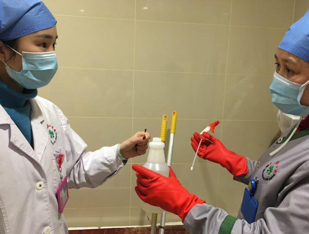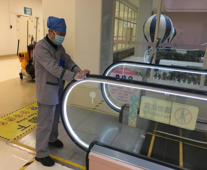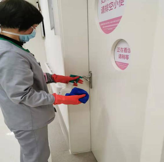 每天实时传达医院各级部门对我们保洁及运送工作的具体要求,按照医院物表的消毒浓度增加物表消毒频次,尤其重视患者高频接触区域的清洁及消毒工作,同时按照院感科的要求于1月22日制定了新型肺炎防控措施对员工进行一对一的培训、考核。现场督导接触疑似患者的员工进行消毒、隔离操作,保障妇儿就诊安全。就诊患者及家属情不自禁地为我们点赞,看到我们忙碌的身影以及对待清洁及消毒工作的严谨,她们说:“心里踏实!”