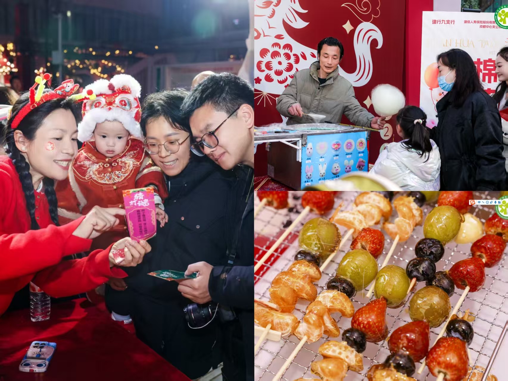 庙会上,医院的职工们陪伴父母、携手子女,笑意盈盈地融入一片红火喜庆之中。美食摊位前,院领导为大家炸起金黄酥香的土豆片;红糖糍粑、蛋烘糕、三大炮、非遗糖画、烤苕皮等各样风味接连登场,香气四溢。川剧变脸引人惊叹,小丑互动逗趣满场;新生儿科与生殖男科设立的趣味游戏区,也吸引了众多职工驻足参与。猜灯谜、套圈、投壶、眼疾手快等游戏环节欢笑不断,现场既洋溢着传统中国年的浓厚氛围,也渗透着华西二院特有的集体温度——这不仅是属于团聚与幸福的滋味,更传递出携手同行、共赴新程的蓬勃气息。