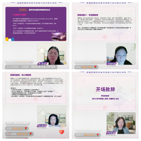 当晚,线上科普患教直播准时开播。本场科普直播累计观看6349人次,实时点赞超1.7万次,直播间累计收到观众提问 20 余条。曾靖副主任医师以《“癌” 也会遗传?—— 关于妇科肿瘤,你必须知道的家族密码》为题开展专题授课,内容深入浅出、通俗易懂,全方位为卵巢癌患者及家属科普赋能。尹如铁、李清丽、王丹青、林小娟等多位教授同步在线答疑,围绕妇科肿瘤遗传风险、预防筛查、规范诊疗等群众关心的热点问题进行深度解读,针对患者疑问逐一细致解答,精准解决大家的诊疗困惑,打破时空限制,让科学防癌知识触达更多家庭。