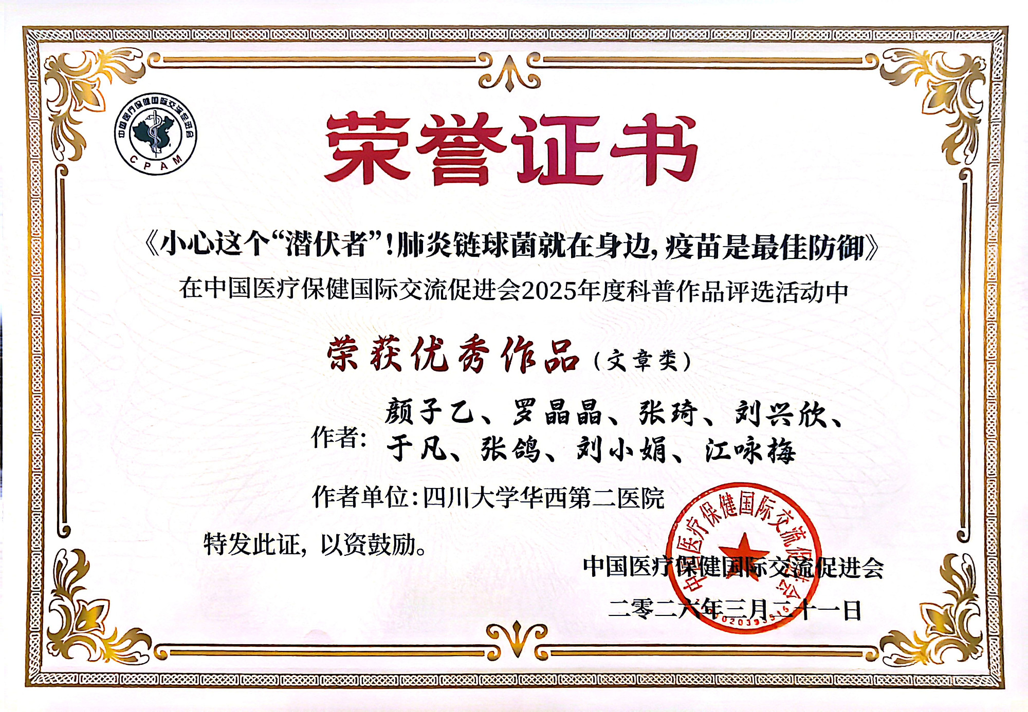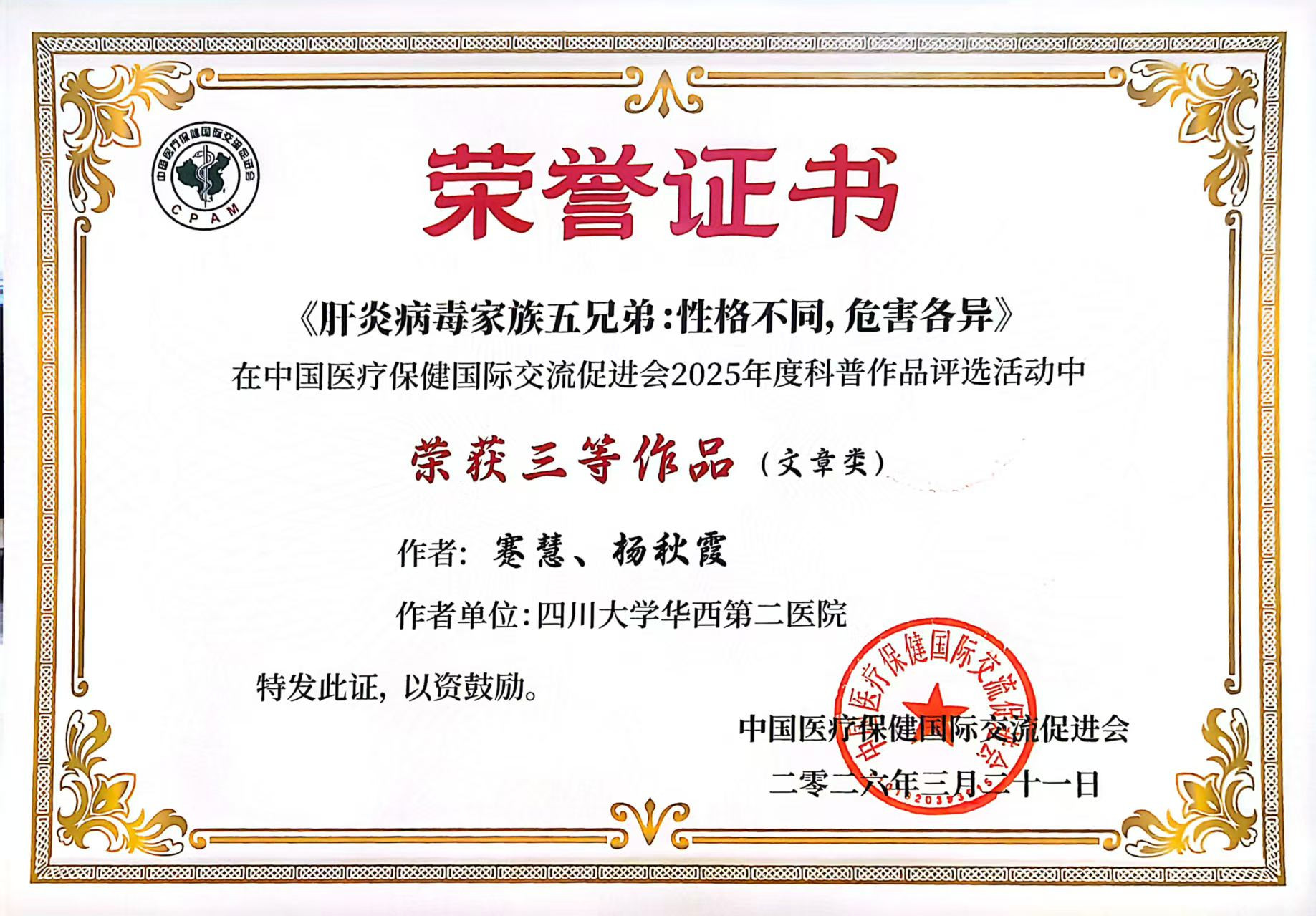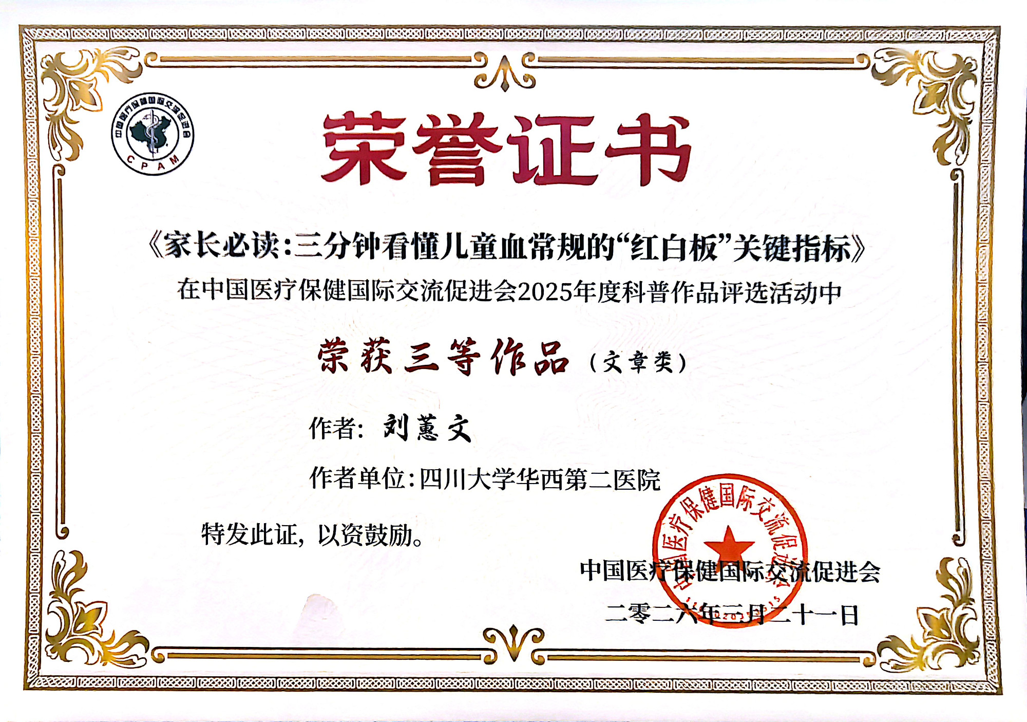 3月21日,中国医疗保健国际交流促进会公布2025年科普大赛获奖名单,检验分会荣获“优秀组织分会”称号(全学会仅两家获此殊荣)。在分会获评的9部科普作品中,我院医学检验科贡献了4部,体现了科室在健康科普方面的扎实能力。