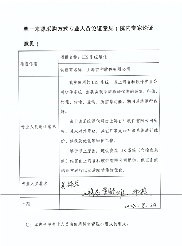 项目名称:LIS系统维保项目